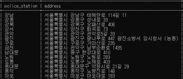 select name from police_station; #이름