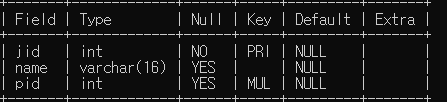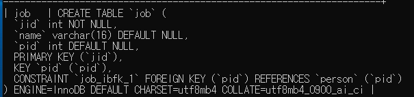 create table job(jid int not null, name varchar(16),pid int, primary key (jid), foreign key (pid) references person(pid));
