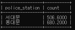 경찰서 별 평균 범죄 발생건수와 평균 범죄 검거 건수 검색