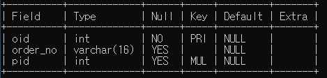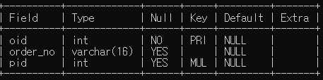 create table orders(oid int not null,