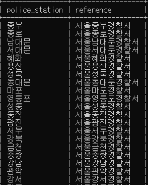예제 1. police_station과 crime_status 테이블 사이의 관계(foreign key) 설정하기
