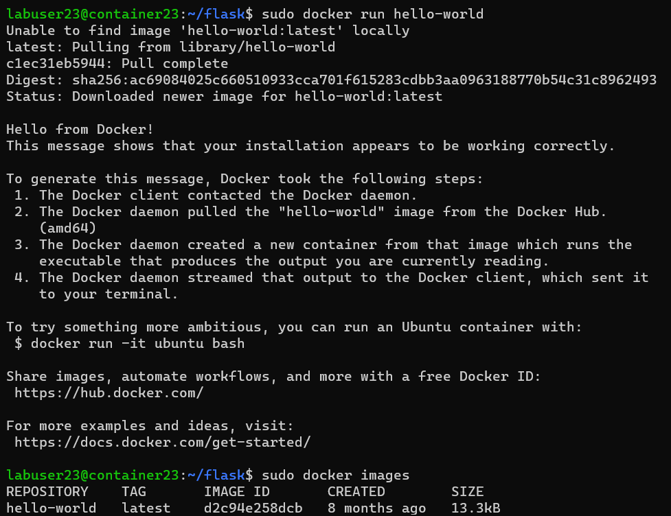 sudo docker run hello-world