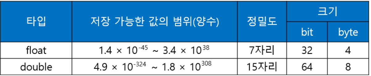 실수형 값을 저장할 때, float 타입이 아닌 double 타입의 변수를 사용하는 경우 대부분 저장하려는 '값의 범위' 때문이 아니라 '높은 정밀도'가 필요해서입니다.