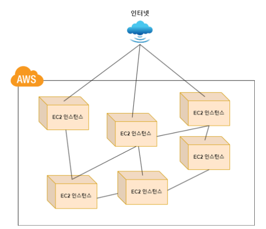 - VPC가 없다면 EC2 인스턴스들이 각각 연결되어 매우 복잡한 구조가 됩니다.
