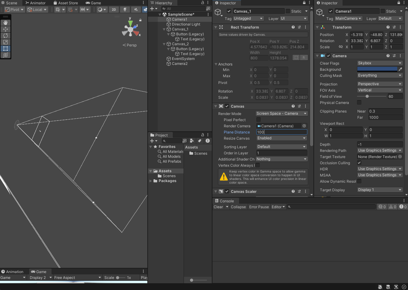 - 카메라에 Canvas를 표시할 거리를 조절한다.