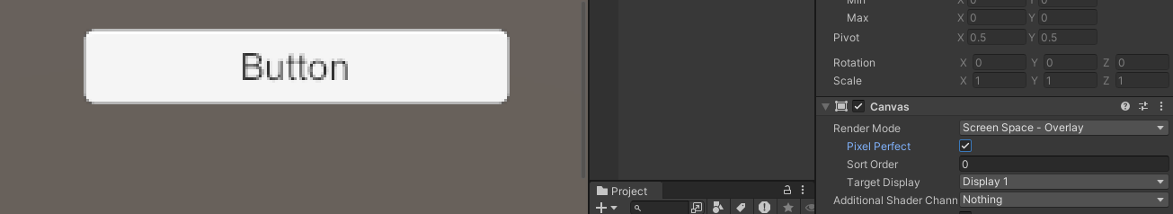 흐릿하게 보이는 버튼이 Pixel Perfect 옵션으로 조금은 더 선명하게 표현된다.