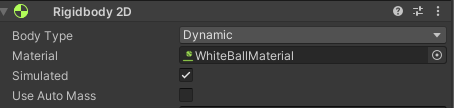 지금처럼 Materials에 추가를 해놨지만 다른데에 추가를 해도 무방하다. 임시로 Material에 추가했다. WhiteBallMaterial을 클릭해서 Inspector에서 보면