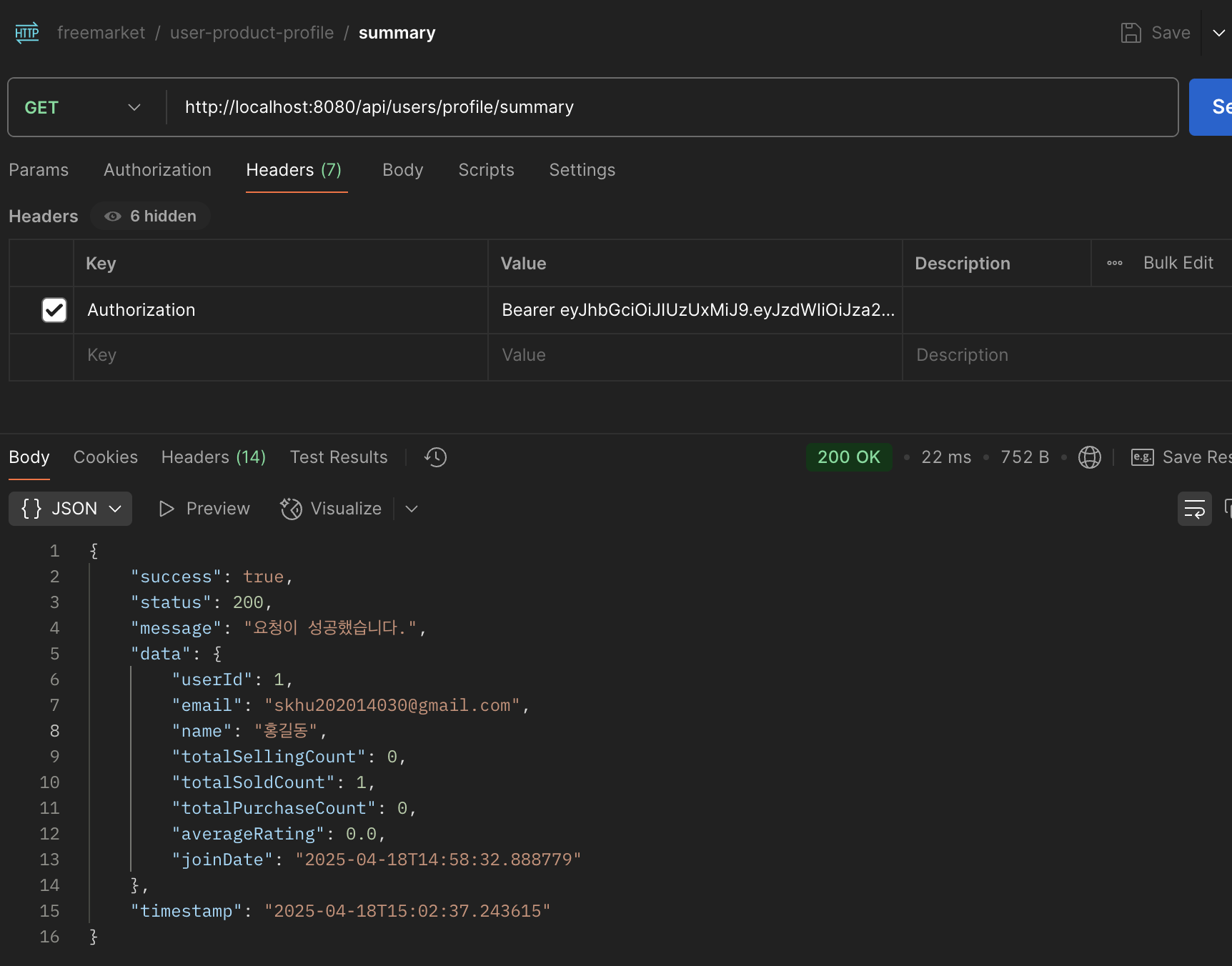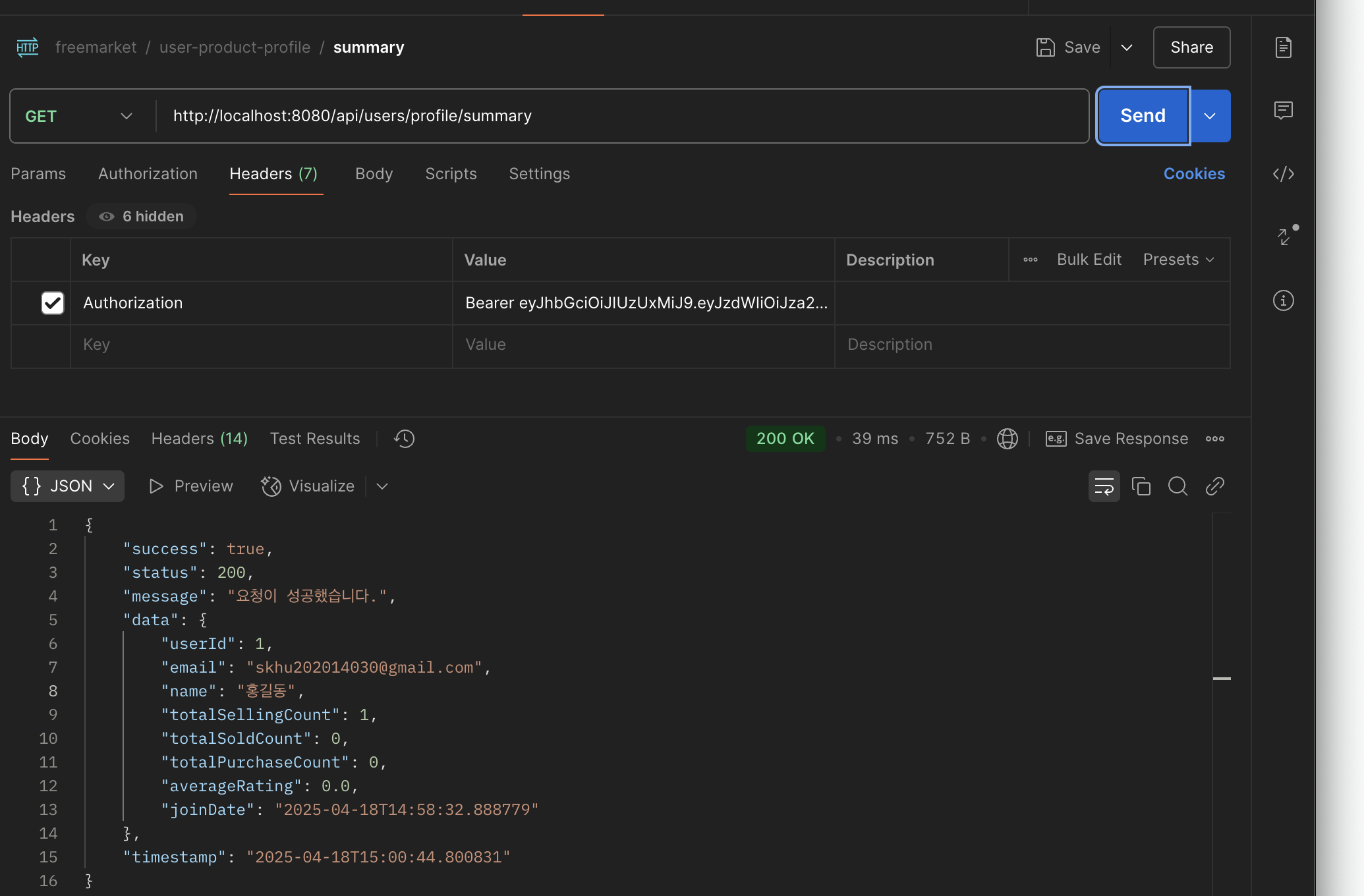 UserProfileDto.ProfileSummaryResponse response = userProfileService.getProfileSummary(userDetails.getUserId());