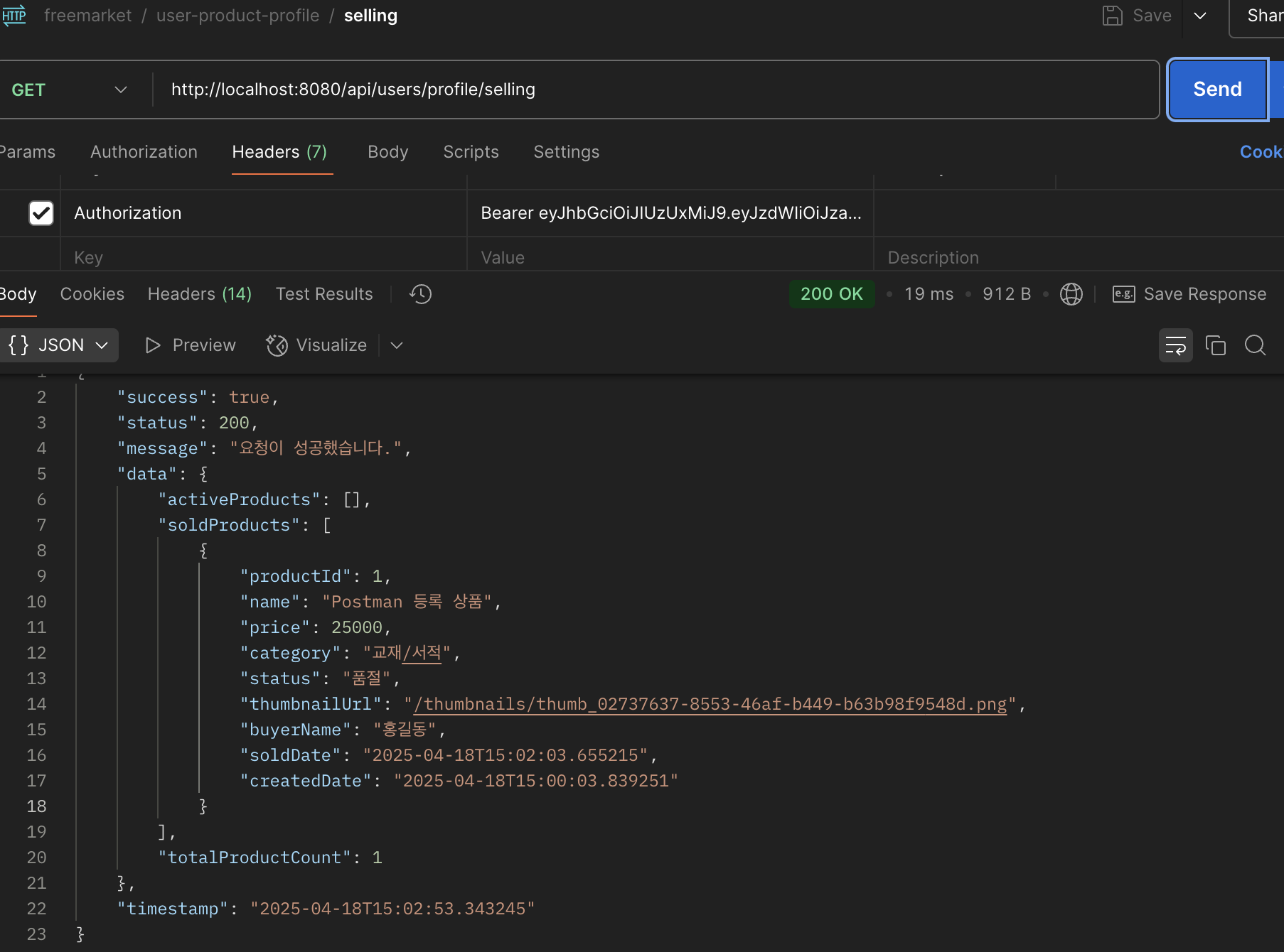 CustomUserDetails에서 추출판매 내역 조회 (GET /api/users/profile/selling)