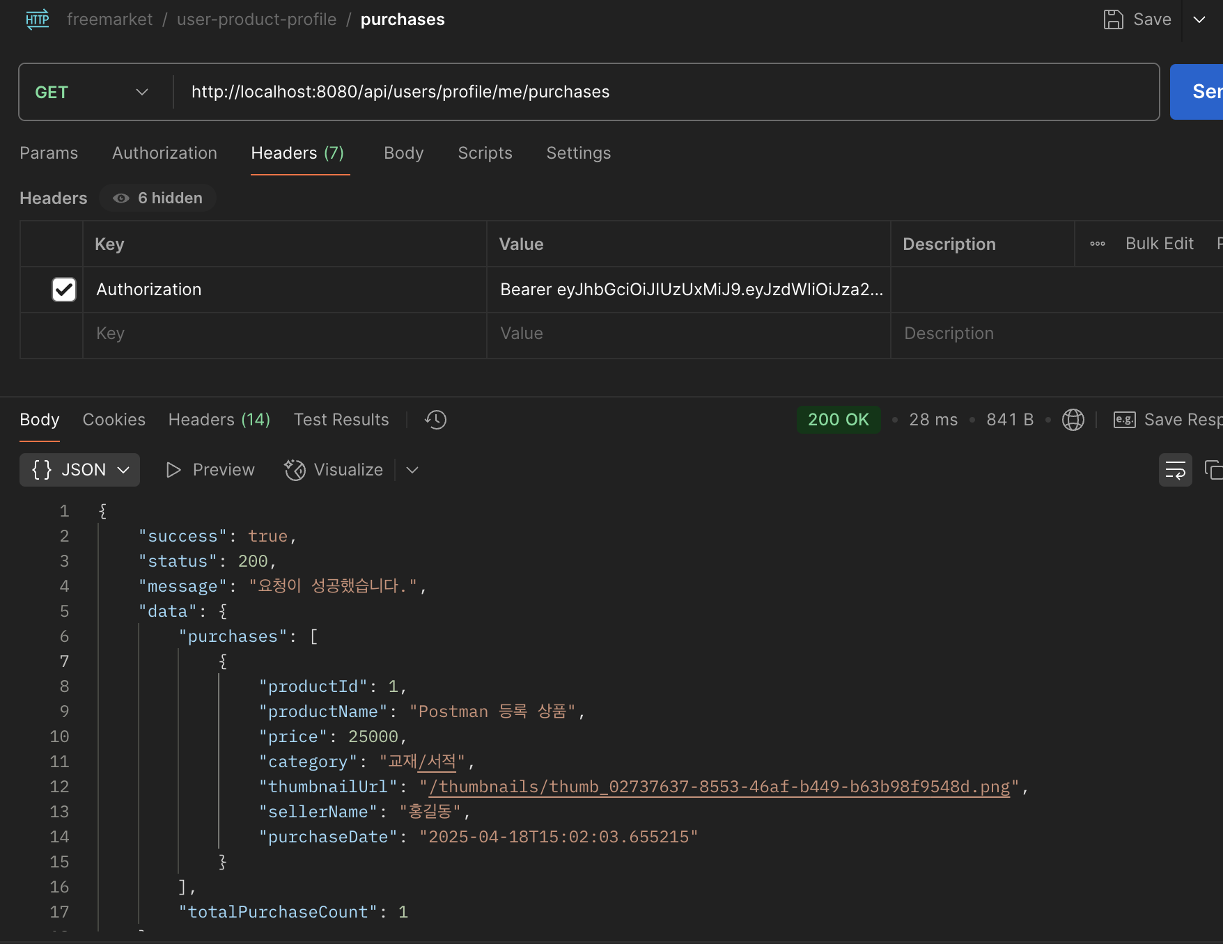 구매 내역 조회 (GET /api/users/profile/me/purchases)