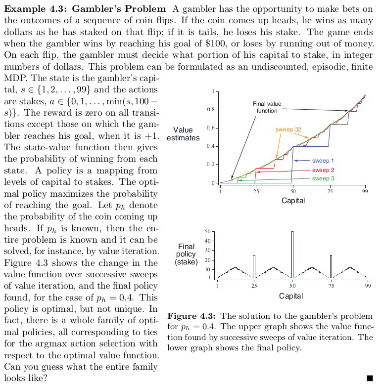 Why does the optimal policy for the gambler’s problem have such a curious form?