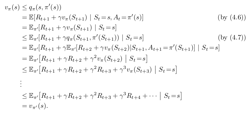 기준은 현재의 policy 와 다른 action을 취하는 새로운 policy 에 대하여 action-value function값이 더 커지는 지를 보면 된다.