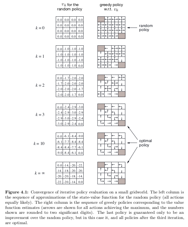 그래서 figure 4.1을 보게 되면 policy evaluation을 수렴할 때까지 하지 않아도 policy improvement를 하는데 문제가 없는 경우를 볼 수 있다.