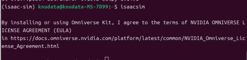 다 다운을 받으면(꽤 오래걸림) 터미널에 isaacsim을 쳐준다.