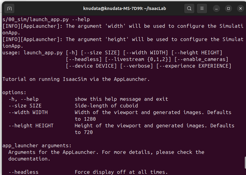 parser = argparse.ArgumentParser(description="Tutorial on running IsaacSim via the AppLauncher.")
