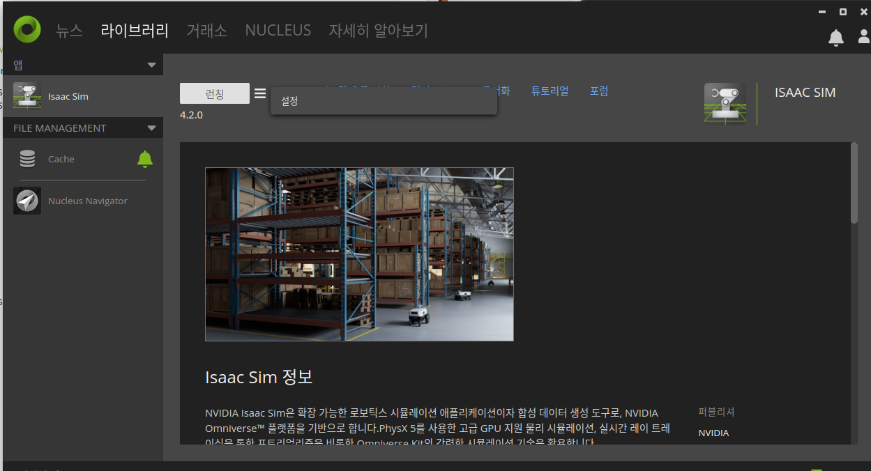 해당 홈페이지에 들어가 omniverse-launcher을 다운받아 isaacsim을 다운로드한다.