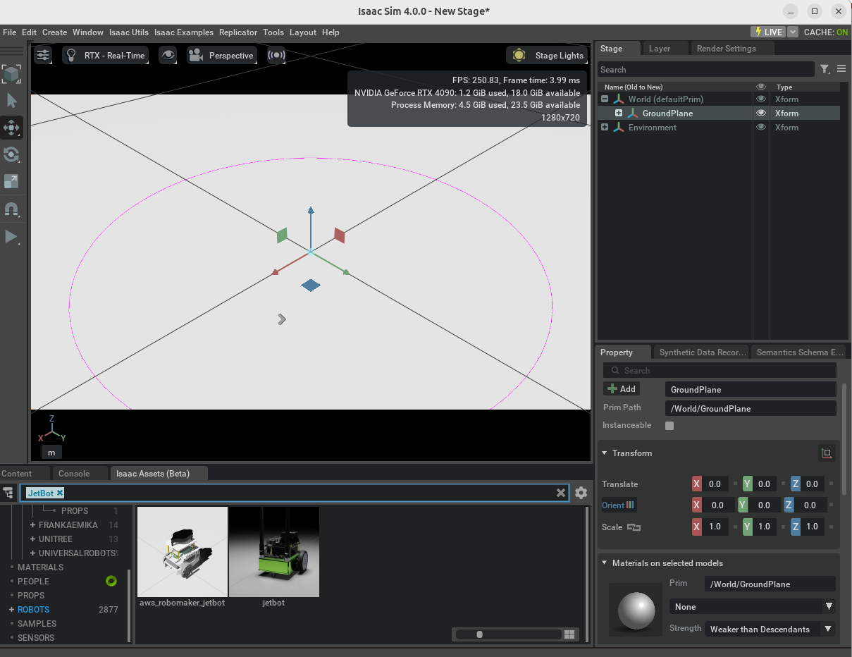 재생을 클릭하면 JetBot이 중력에 의해 지면위로 떨어지는지 확인해주자.