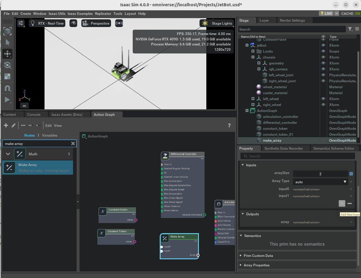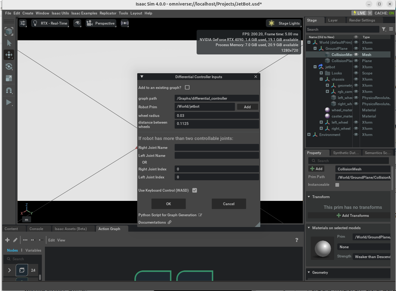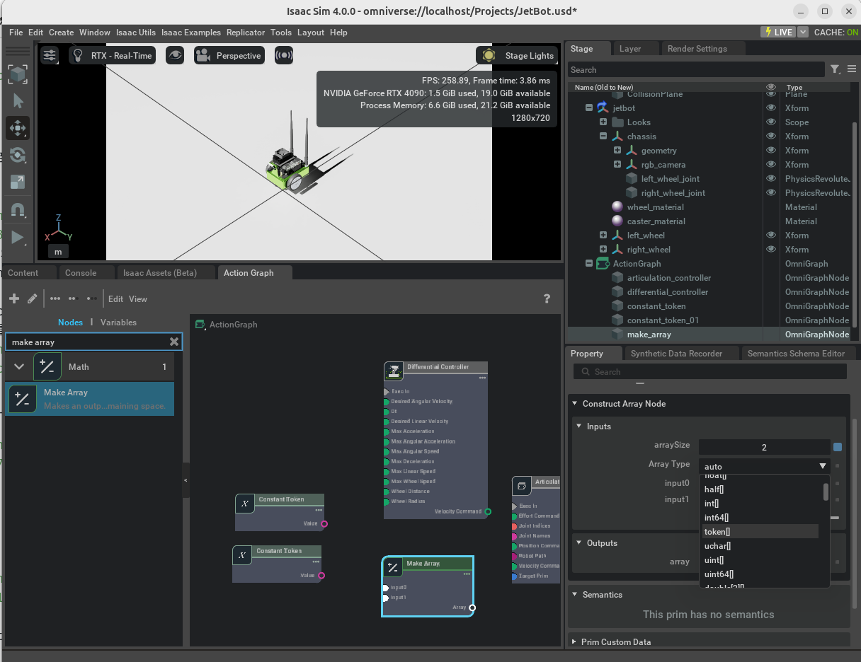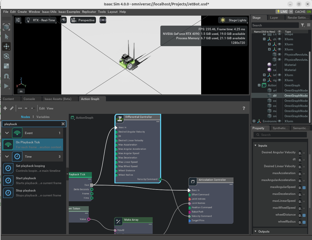 Articulation Controller은 어떤 관절을 관절화해야 하는지 설정해줘야 한다. 토큰과 인덱스값으로 이를 설정할 수 있다. 현재 JetBot은 두개의 관절이 존재한다.
