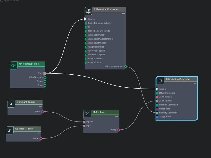 constant token을 input 0, 1에 이어준다. make array는 Articulation Controller의 Joint Names에 이어준다.!