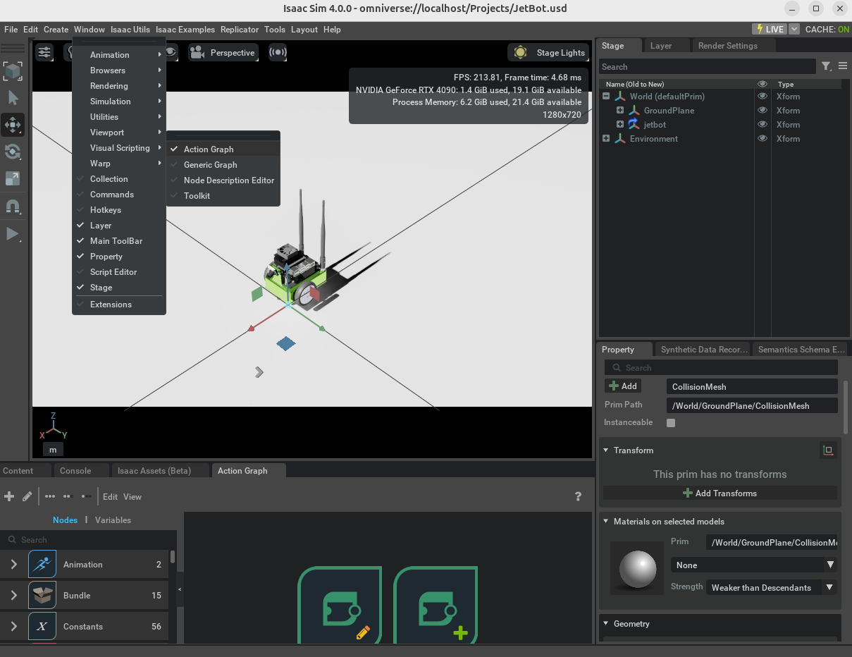 Isaac Sim은 통상적으로 Action Graph를 사용한다.