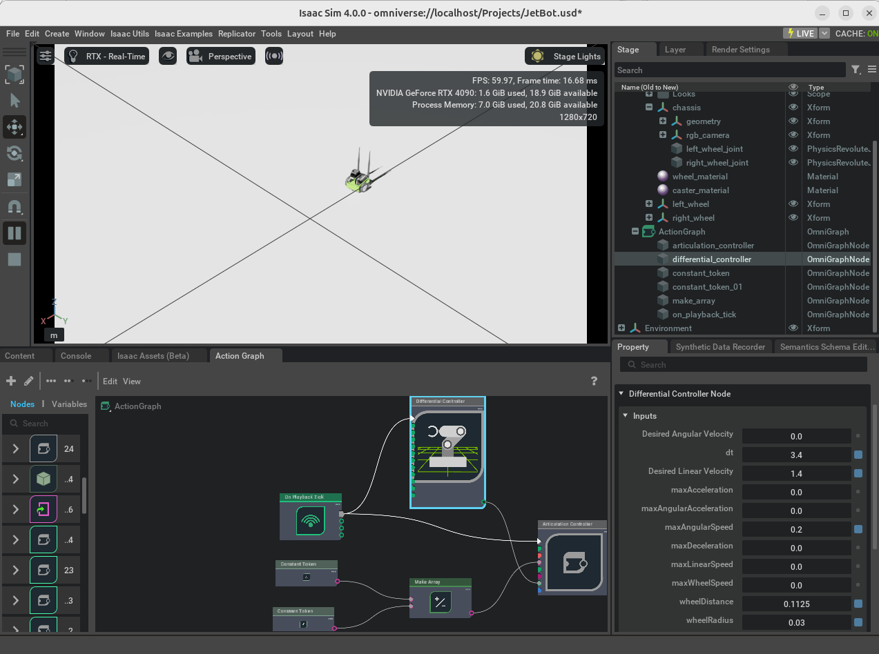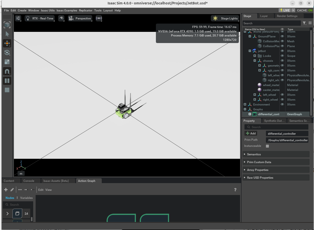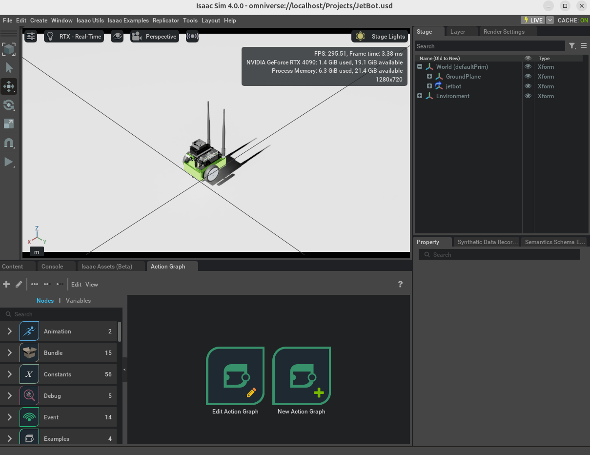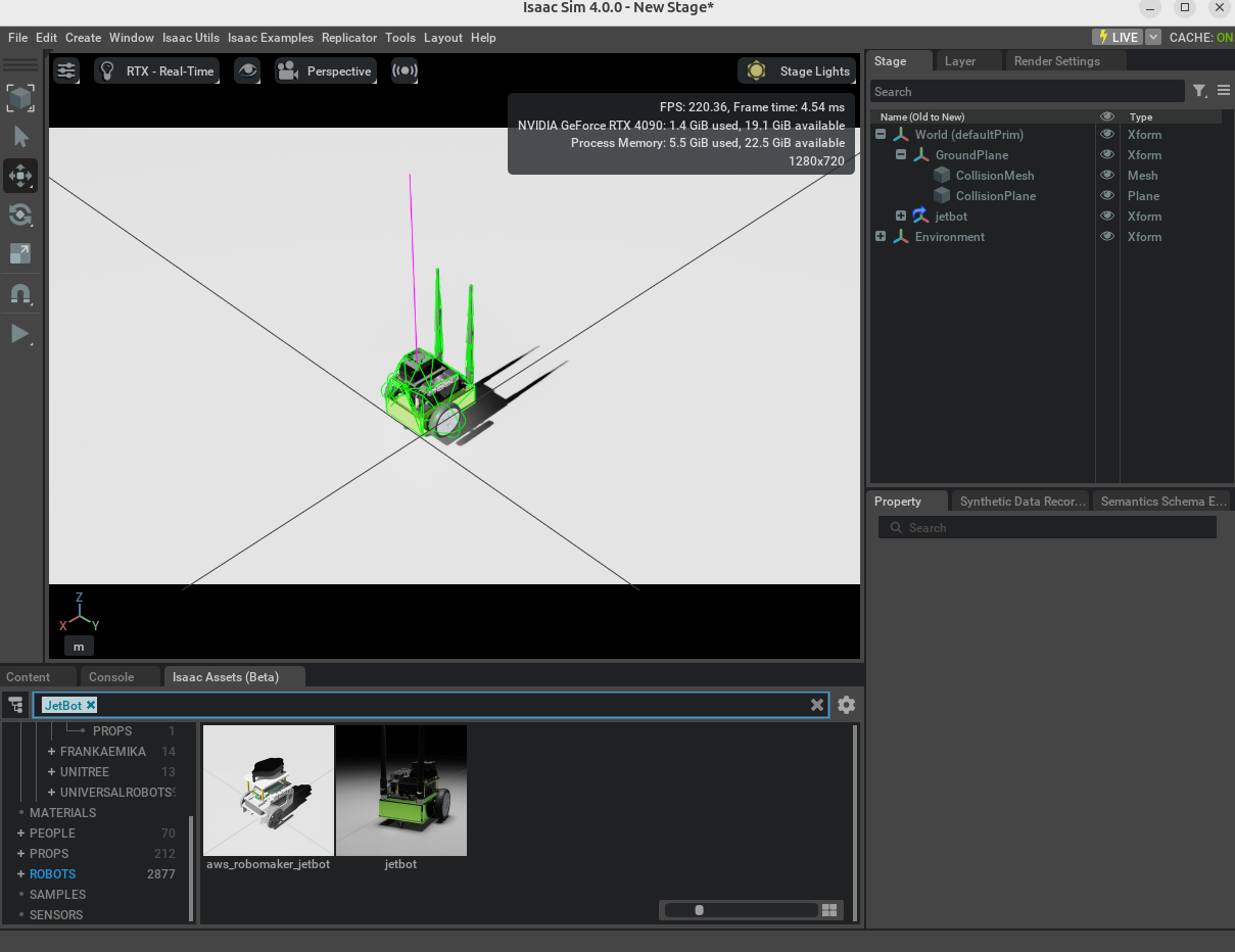 이후 시뮬레이션을 시작해 WASD로 조작해보면 게임처럼 JetBot을 움직일 수 있다.