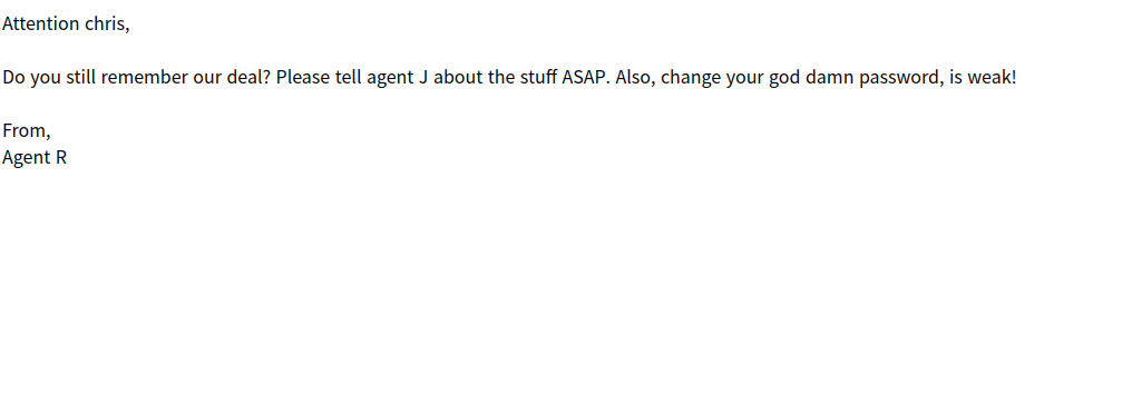 chris한테 Agent J한테 비번 바꾸라고 알리라고 하는 것 같다.