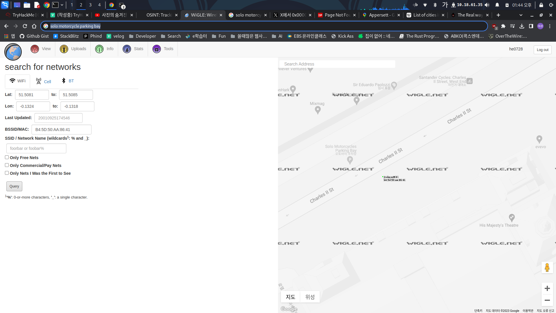 https://wigle.net/ 에서 BSSID로 추적해본다