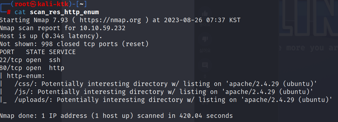 버전 확인을 위해 nmap의 http-enum 스크립트를 써 보자