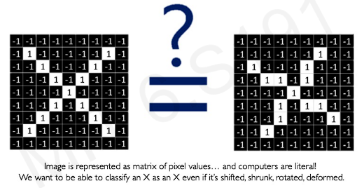 Both of the Xs are X as we can see. But LHS X is rotated to some degree. We want the model to detect both Xs. We need to define the features about X more cleverly. The best way to do is applying convolution.