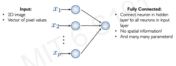 The problem is, spatial information of image is totally lost because we have flattened the image into 1D array. In addition, we have enormous number of parameters because this system is fully connected.