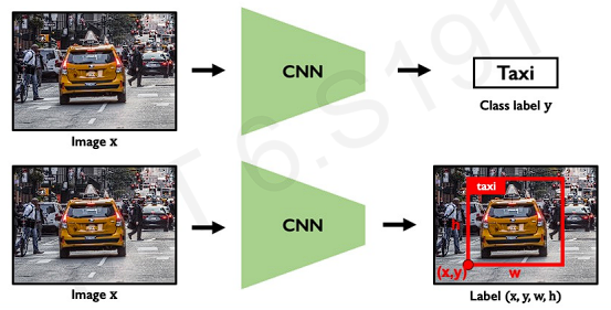 The neural network can not only identify what it is but also find bounding box of the target. The task is both a regression problem(where is the box -> continuous problem) and classification(what is in that box)