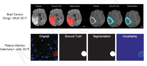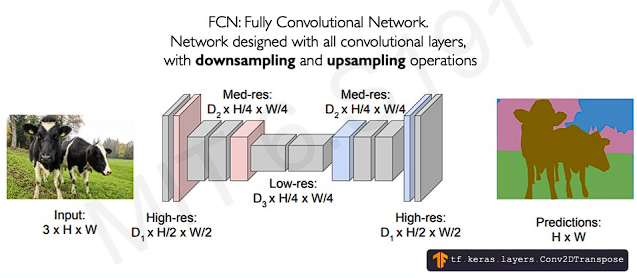 The example shows where the pixel belongs to(cow, trees, grass, or sky) and the goal of the model is to reconstruct the space into a new space of semantic labels.