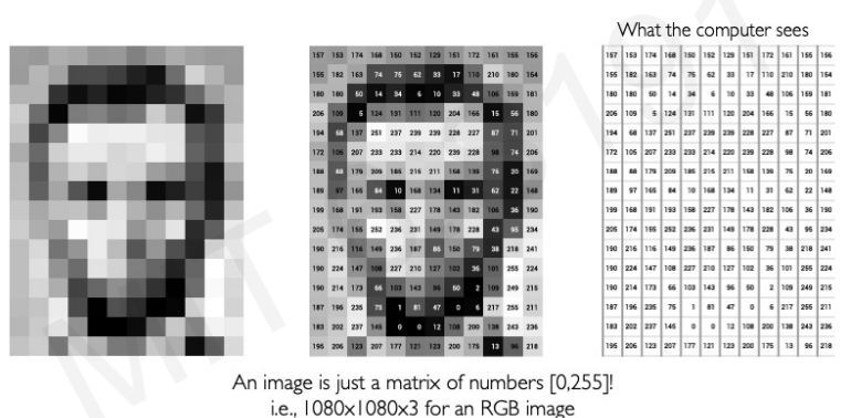 Images are numbers for computers. Image are made up of pixels. And the pixels are numbers. Therefore, we can represent image to 2D matrix.