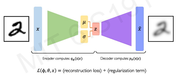 As we can see, 'encoder' learns mapping from to a low-dimensional space , and 'decoder' learns mapping back from latent space z to reconstructed observation . The reconstructed output is an imperfection reconstruction.