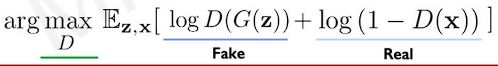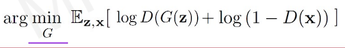 With the generator, we have same equation, but the goal is different(the goal is to minimize distances between fake and real).