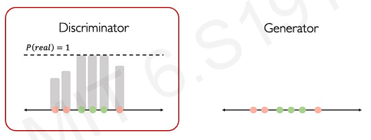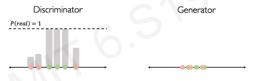Now, we go back to generator. The generator sees where the real data lie on the line. Then, it is forced to start moving its generated fake data closer and closer to the real data. Then, the discriminator repeats the training(same process) for perfect classification.