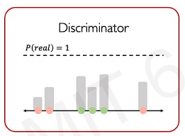 After training, it starts increasing the probability for those real data until the discriminator reaches the ability of perfect classification(() = 1).