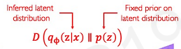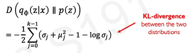 The mathematical term() computes the distance divergence between prior and latent. This is called as KL-divergence.