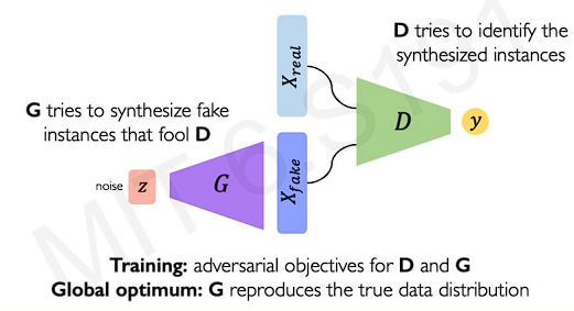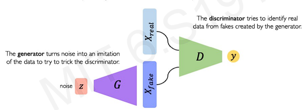 The key idea is to interface two neural networks. One is a generator and one is a discriminator. This two networks compet with each other.