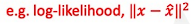 Then, we define a loss function(see the figure). We want to optimize the network weights( and ) w.r.t the data by this function. The first term of the equation is the reconstruction loss where the goal is to capture difference between our input data and the reconstructed output. The second term is called regularization term. It is referred to as a vae loss.