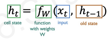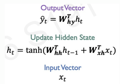 In updating equation : previous hidden state is multiplied by a weight matrix, and input vector is multiplied by another weight matrix, and they pass through non-linearity.