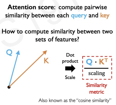 Third, compute a similarity score between the query and the key. The query and the key are already encoded into vectors.
