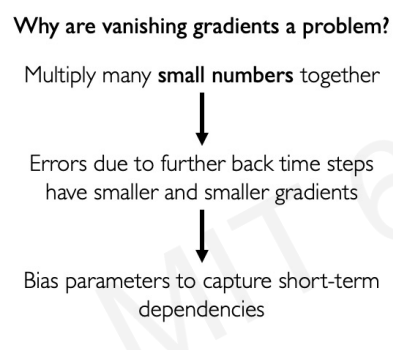 If the sequence gets longer, vanishing gradients make RNNs unable to establish long term dependencies.