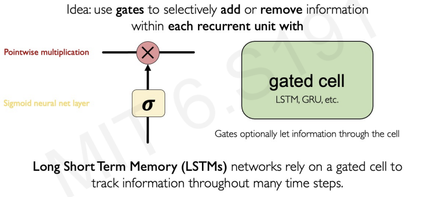 The gate controls selectivley the flow of information into the neural unit. -> This makes neural units filter out what is not important while maintaining what is important.