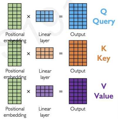 we do this by separating neural networks for query, key, value with different weight matrices.