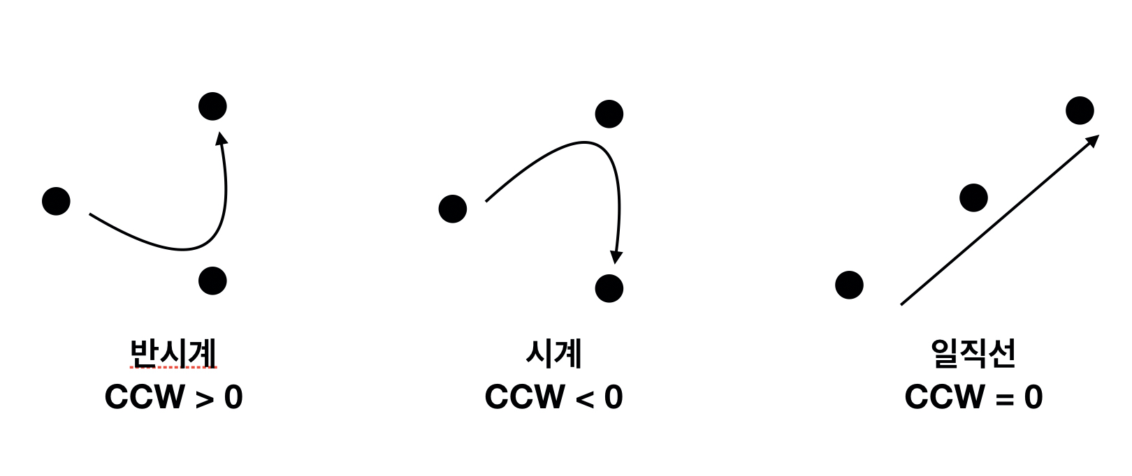 '한 선분과 한 점을 외적 때렸을때 나오는 값이 양수일때는 점이 선분의 반시계 , 음수일때는 점이 선분의 시계방향 위치에 있다.'