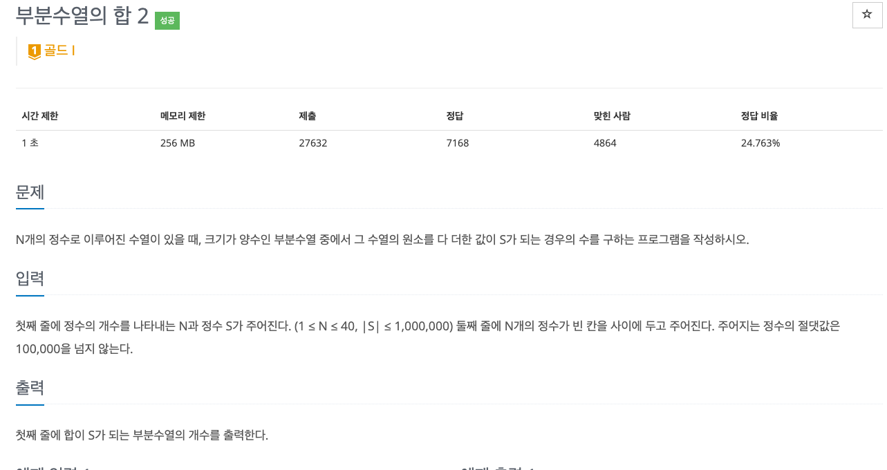 백준 1208 부분수열의 합2이다.