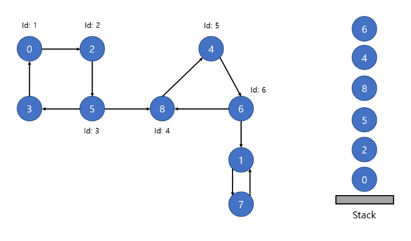 사이클의 노드 들을 모조리 pop하며 check, scc_idx를 갱신한다.