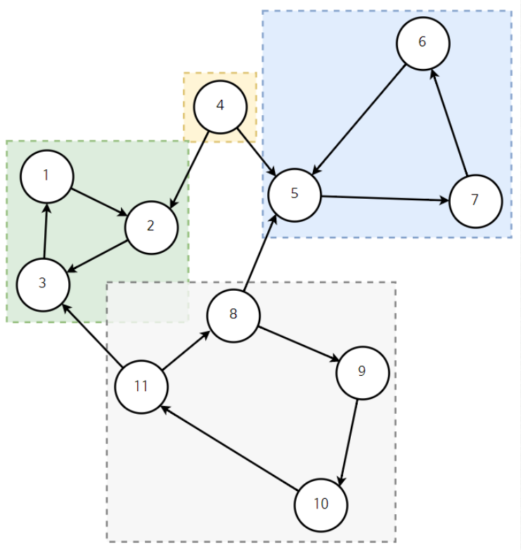 강한 결합 요소는 그래프 안에서 강하게 연결된 정점 집합을 의미한다.
