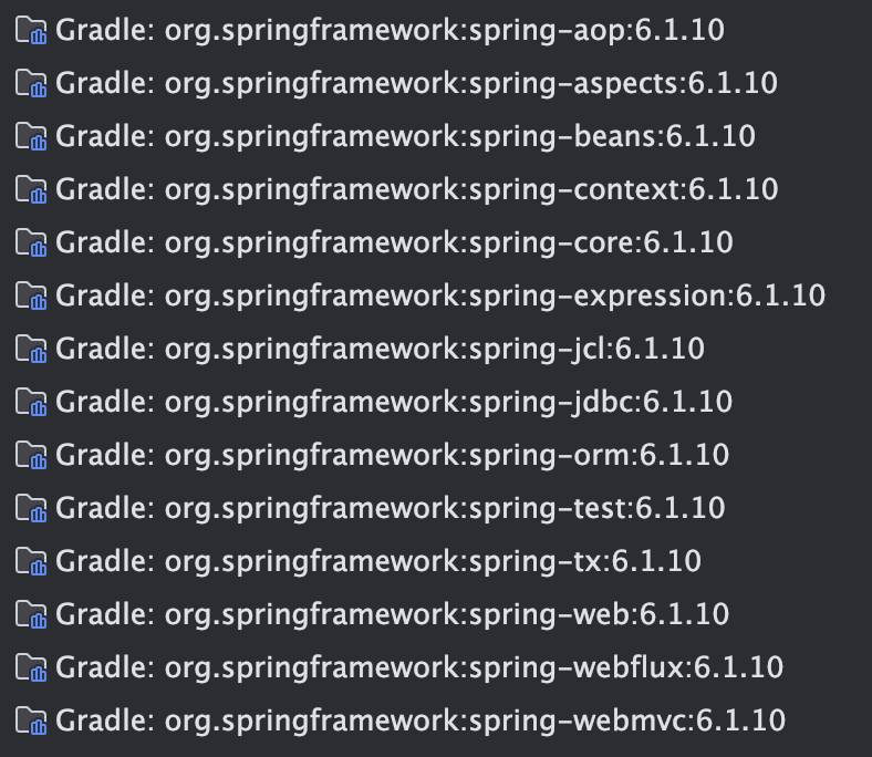 (project에서 참조하는 외부 라이브러리들 spring boot 3.3.1버전을 사용해서 spring 6.1.10 버전을 사용한다.)